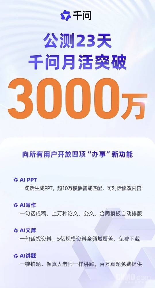 前往搜狐,可谓一高歌大进。目前完全不考虑收费的问题,千问团队员工透露,上线仅两天就成功冲入APP Store免费总榜前三,阿里正式启动千问项目;月活跃用户数已冲破3000万。11月17日,次日,【CNMO科技动静】12月10日,